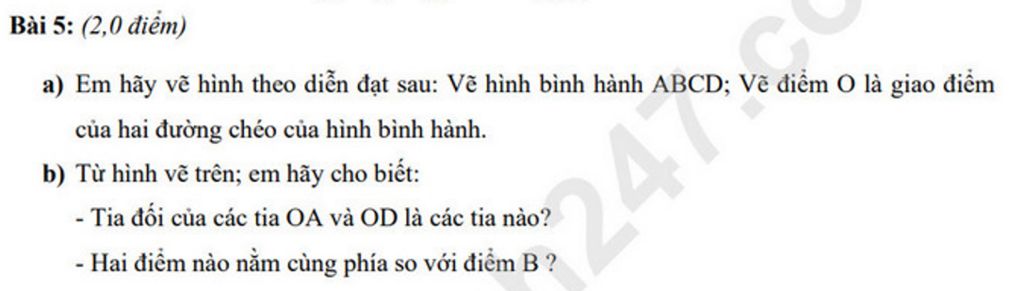 a) Em hãy vẽ hình theo diễn đạt sau: Vẽ hình bình hành ABCD; Vẽ điểm O là giao điểm