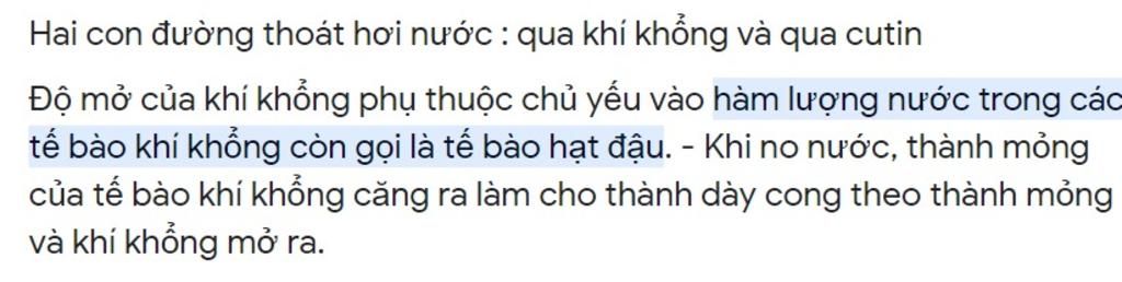 Độ mở của khí khổng phụ thuộc chủ yếu vào hàm lượng nước trong các tế bào khí khổng còn gọi là tế bào hạt đậu.