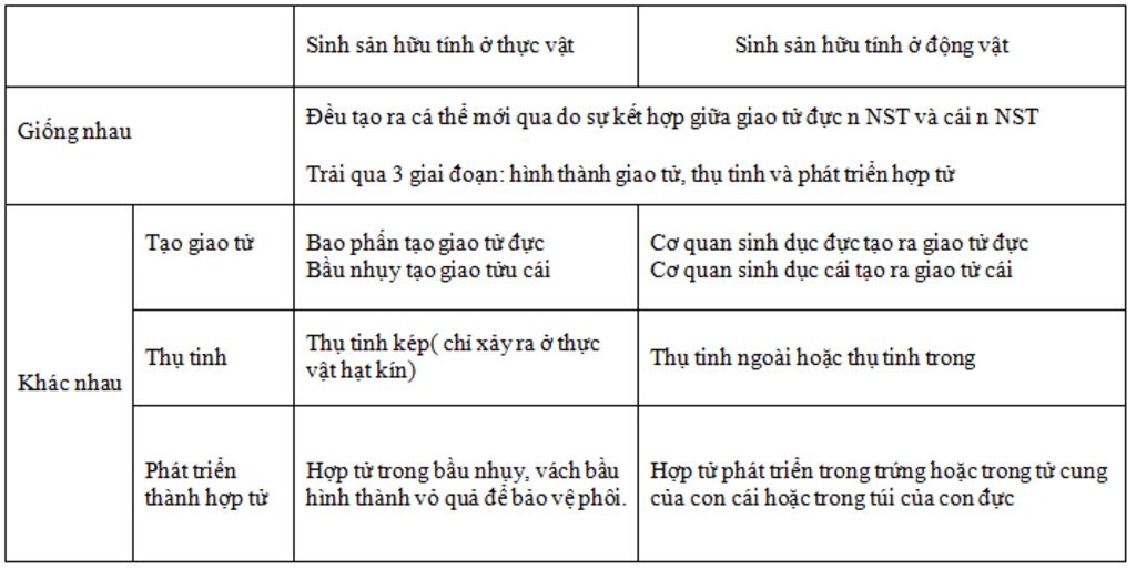 Ta so sánh từng hình thức sinh sản ở động vật và thực vật với nhau.