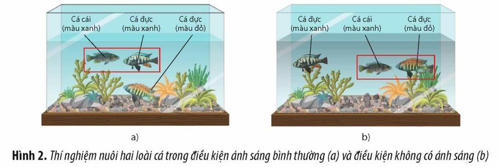 - Nguyên nhân dẫn đến hiện tượng cách li sinh sản giữa hai loài: con đực của hai loài có màu lưng khác nhau, có thể là do sở thích giao phối của con cái và con cái chỉ giao phối với con đực cùng loài.