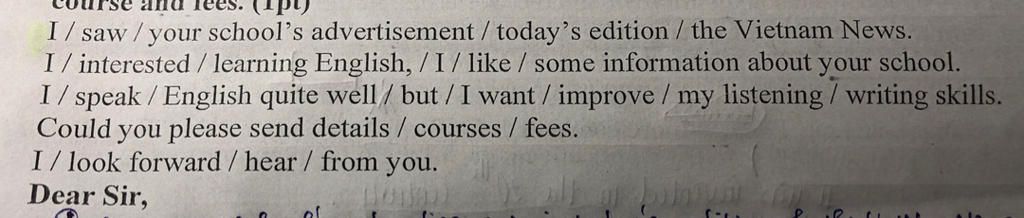 giúp mình viết đoạn tiếng anh này với ạ lớp 9