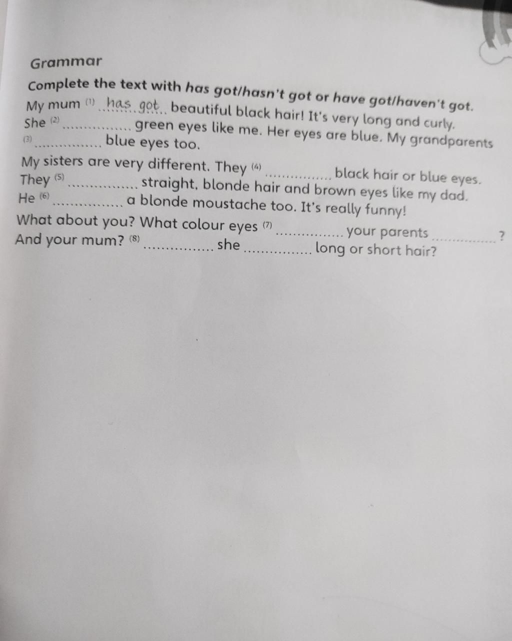 3. have got ( my parents là số nhiều nên dùng "have" )