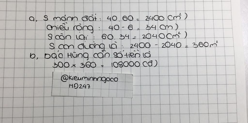`b)` Bác Hùng cần số tiền để lát bê tông hiết lối đi đó là