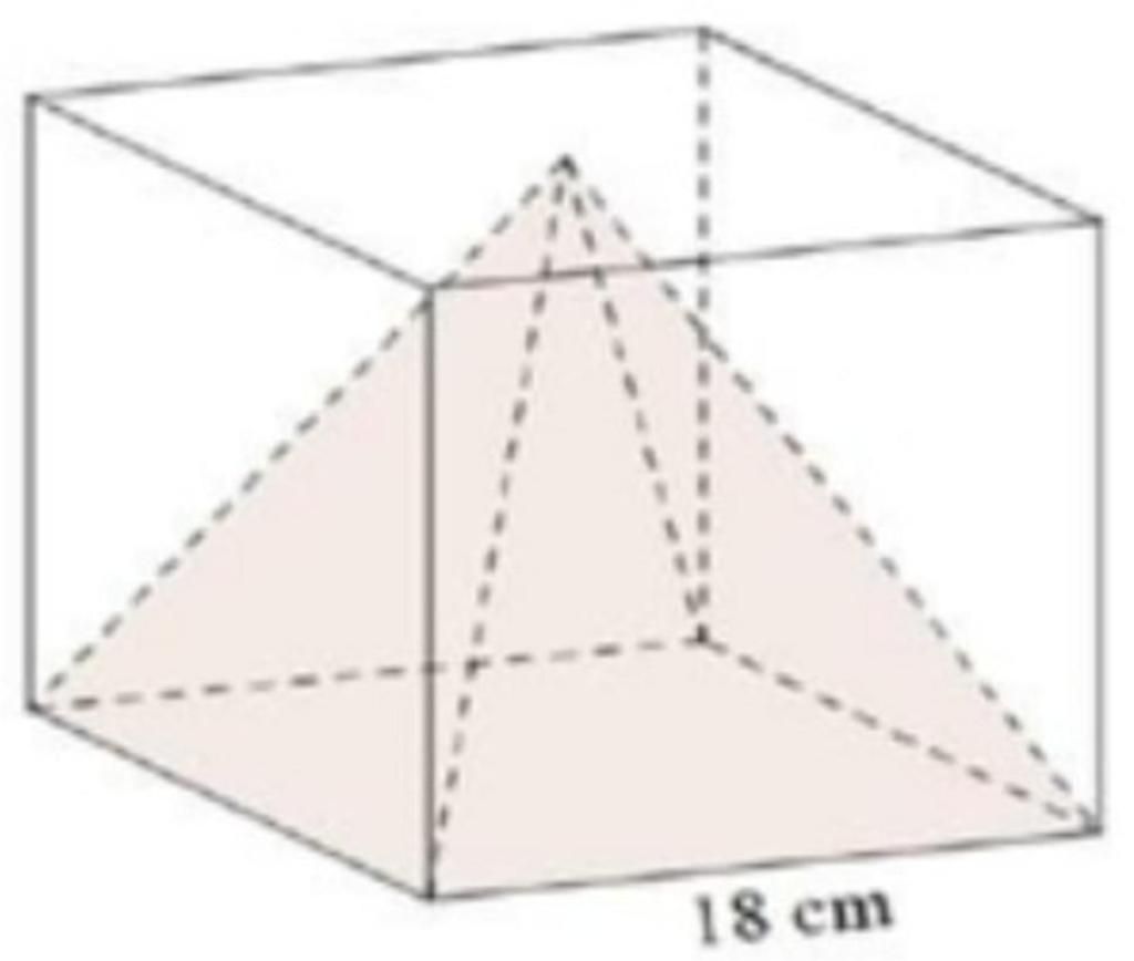 $$18^3-\dfrac13\cdot 18^2\cdot 18=3888(cm^3)$$