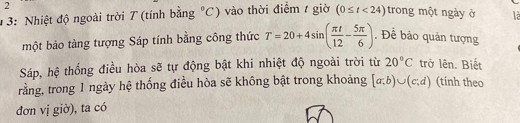 `<=>` `20 + 4sin((pit)/12-(5pi)/6) >= 20`