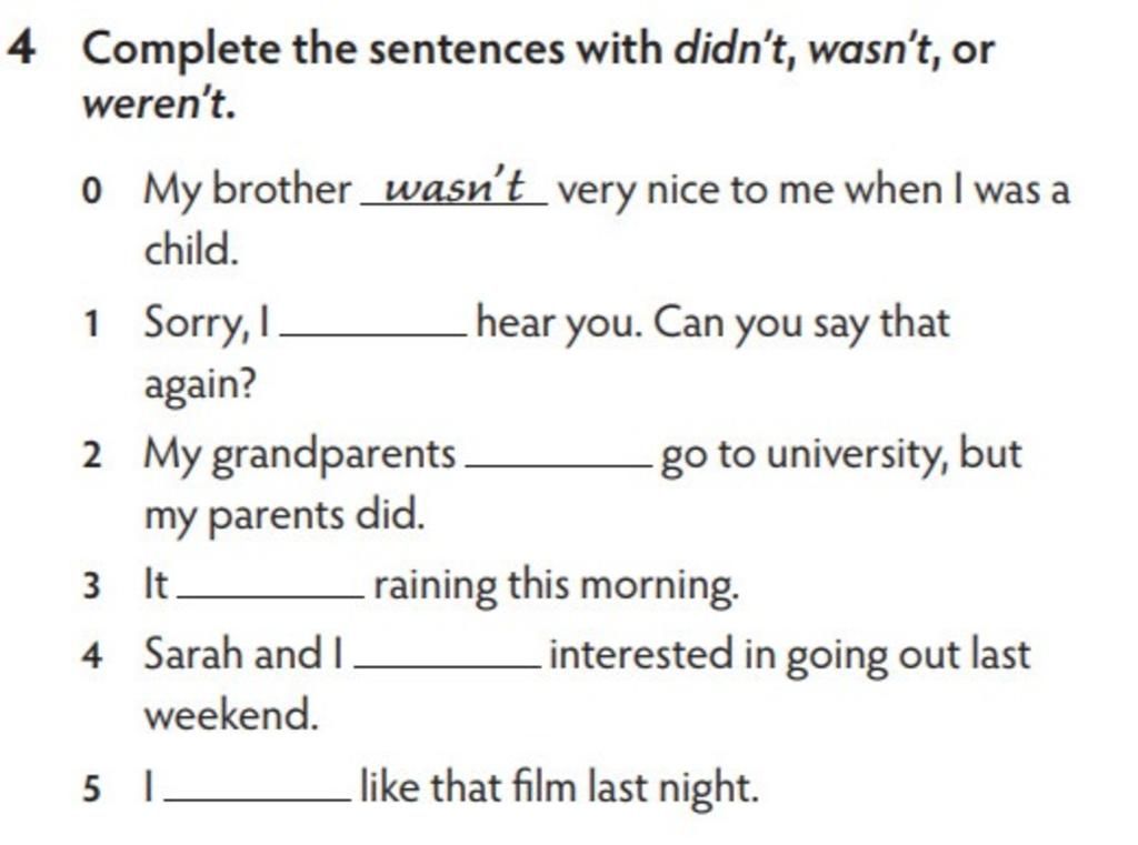 `***`Thì Quá khứ đơn (Thể phủ định)