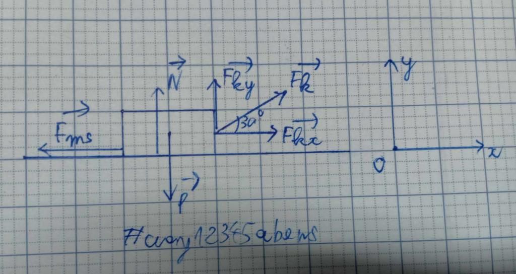 `m = 3kg; F_k = 20N; \alpha = 30^o; \mu = 0,5`
