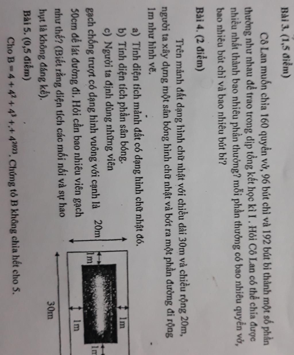 a) Diện tích mảnh đất có dạng hình chữ nhật đó là: 30.20=600(m²)