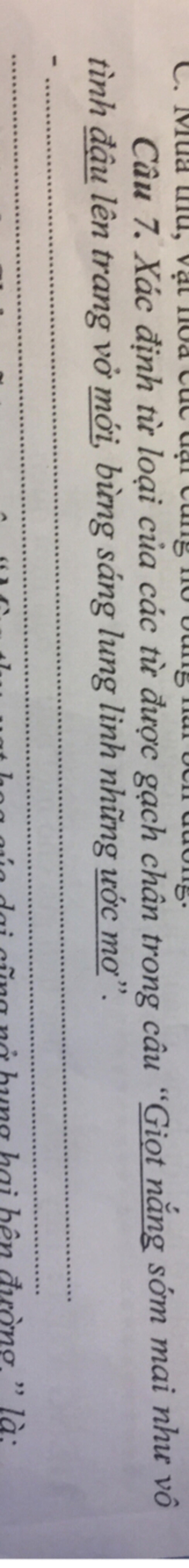 `\text{Giọt nắng}` : Danh từ ( vì đây là để chỉ sự vật )