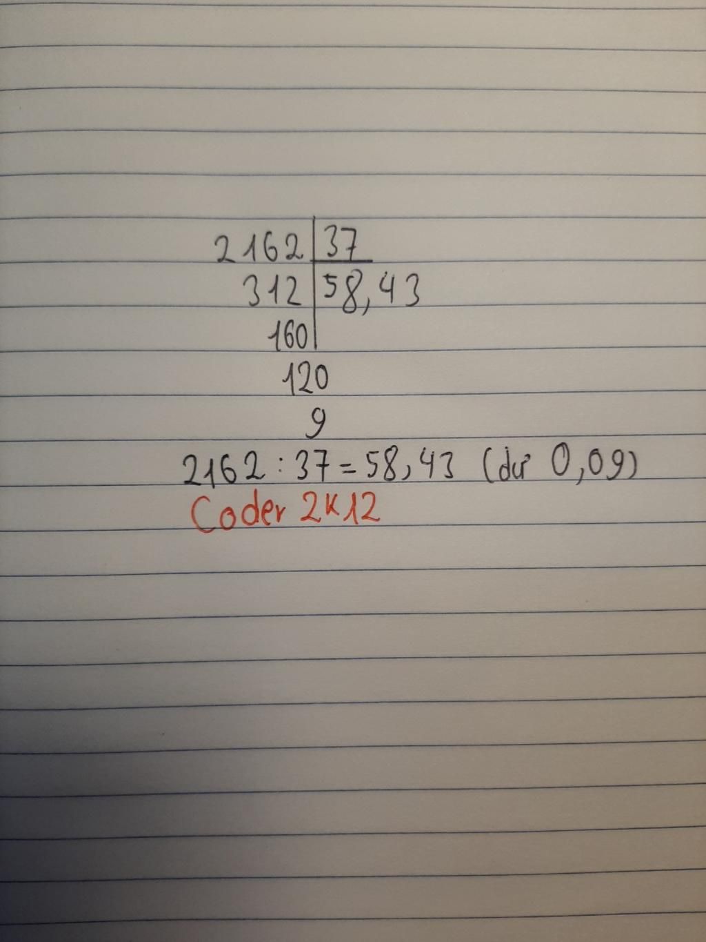 `2162 : 37 =58,43`