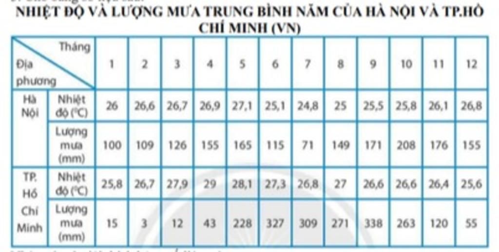 NHIỆT ĐỘ VÀ LƯỢNG MƯA TRUNG BÌNH NĂM CỦA HÀ NỘI VÀ TPHÒ