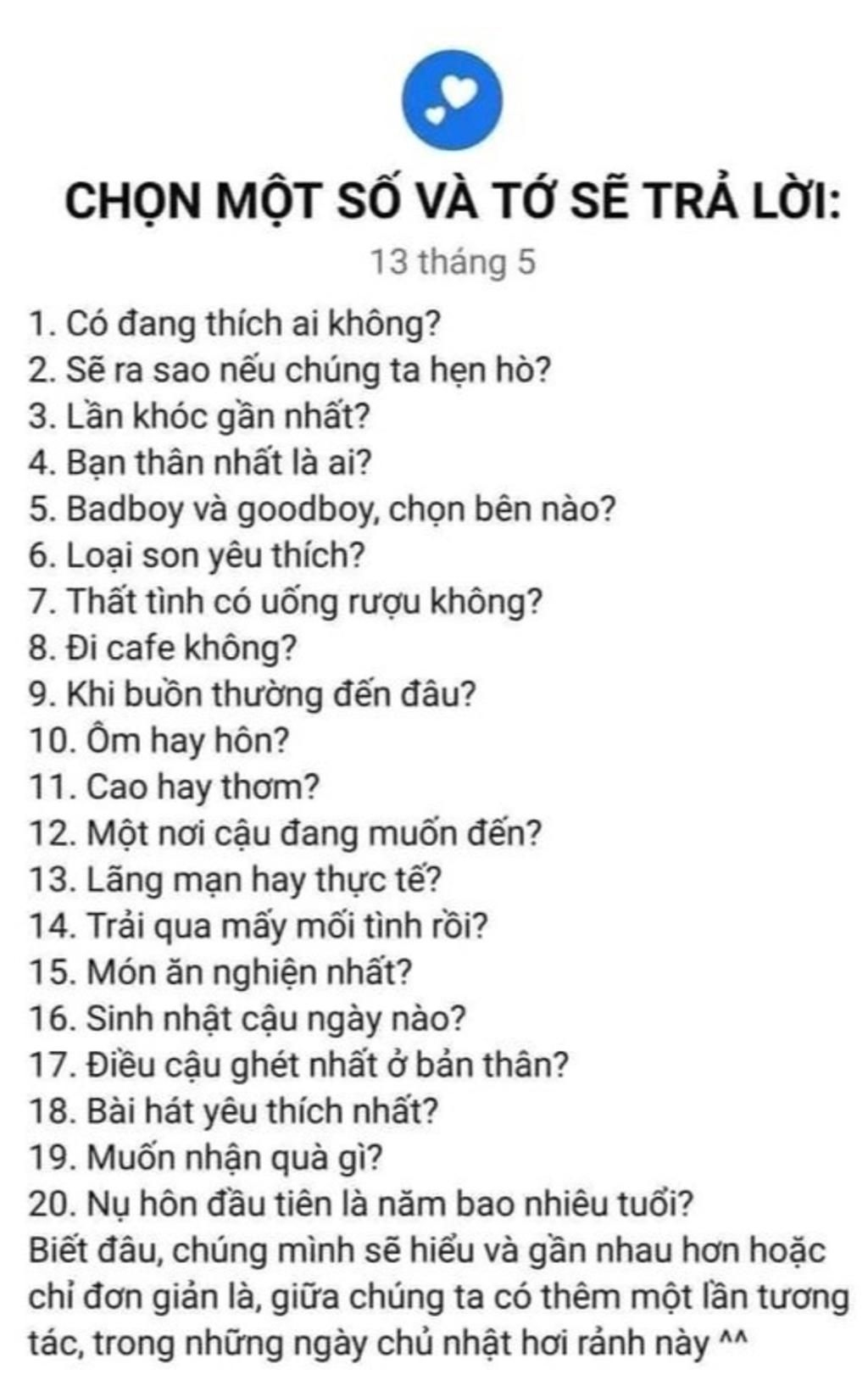 1. Có đang thích ai không?