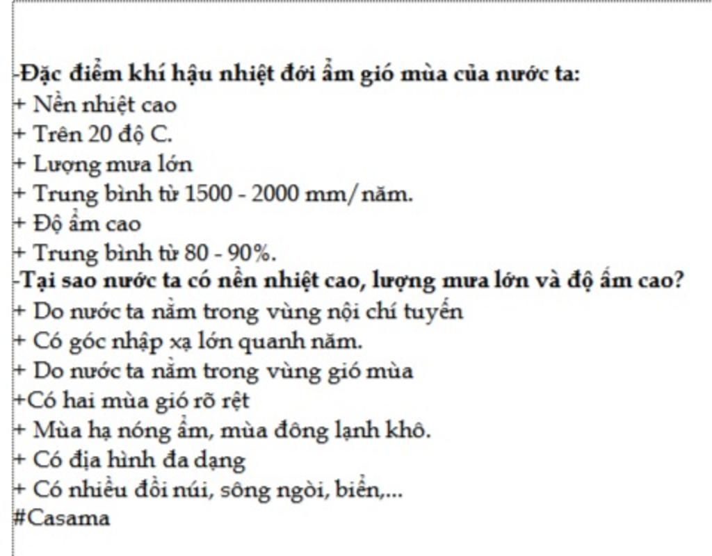 Nước ta có khí hậu nhiệt đới gió mùa: