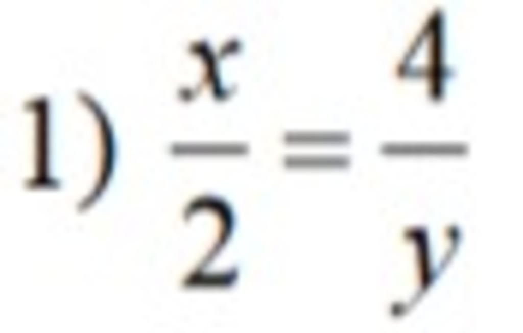 `x/2=4/y=>xy=4.2=>xy=8`$\\$$\\$ `=>``\text{x và y sẽ bằng ước của 8 vì tất cả các số bên dưới nhân cho nhau đều bằng 8}`$\\$ `\text{Ư(8)=1, 2, 4, 8}`
