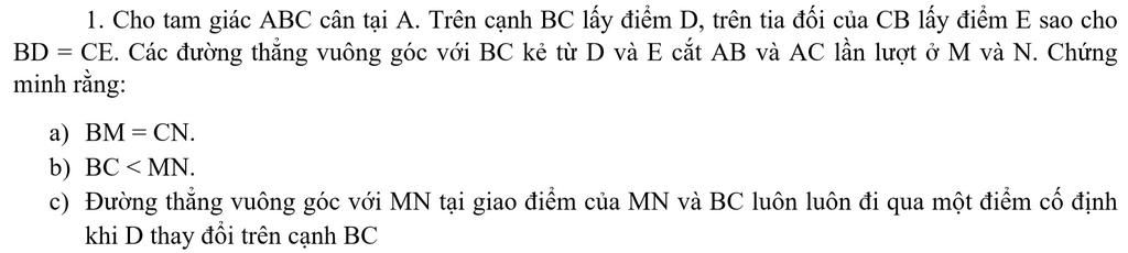 Mà $DE=DC+CE=DC+DB=BC\to BC<MN$