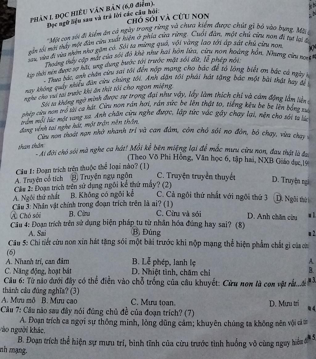 PHẦN I. ĐỌC HIỂU VĂN BẢN (6,0 điểm).
