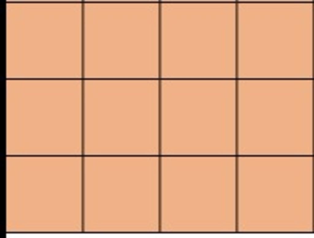 Ta có số ô bìa là : 3 × 4 = 12 ( ô ) Diện tích miếng bìa là : 36 × 12 = 432 ( c m 2 ) Đáp số 432 c m 2