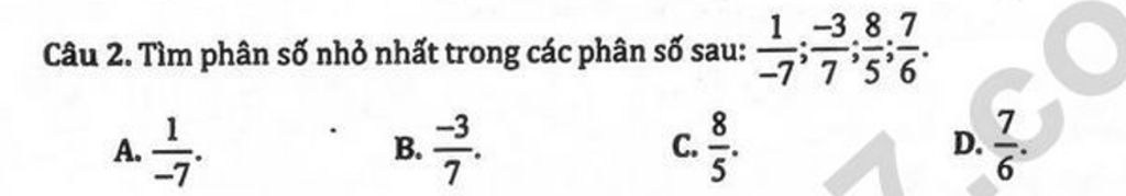 `1/-7 > -3/7` mà `8/5;7/6 > 1/-7`