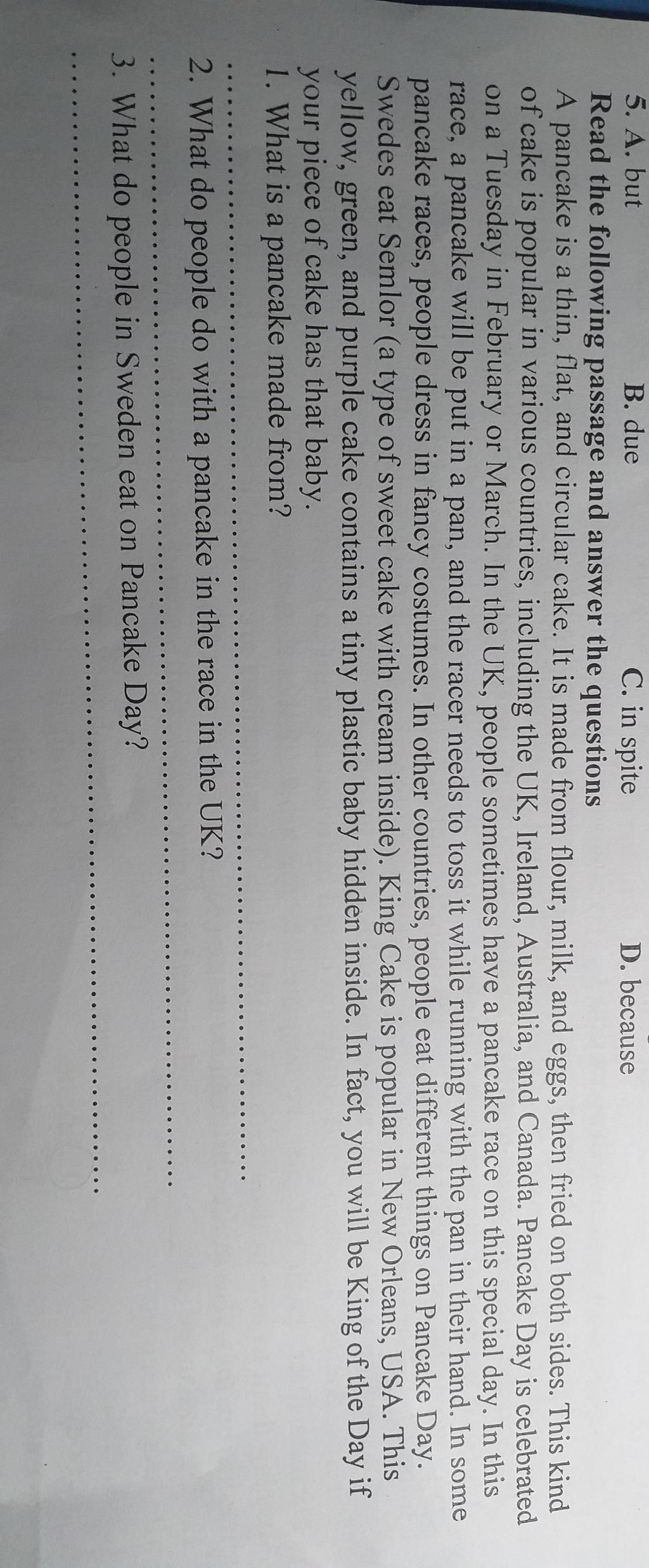 Tiêu đề hợp lí nhất của đoạn văn là : Pancake (Bánh kếp) - Cả đoạn văn xoay quanh vấn đề