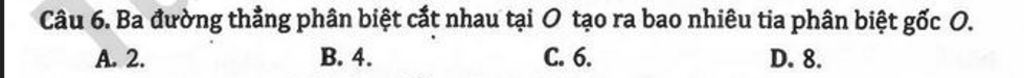 Ba đường thẳng cắt nhau tại O tạo ra `6` tia phân biệt
