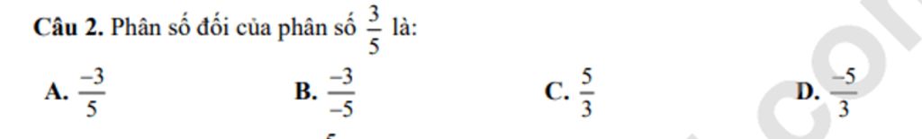 Áp dụng vào ta có phân số đối của `3/5` là `(-3)/5`
