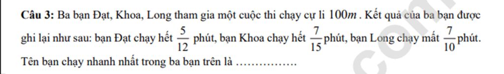 `⇒` Tên bạn chạy nhanh nhất trong ba bạn trên là bạn Đạt
