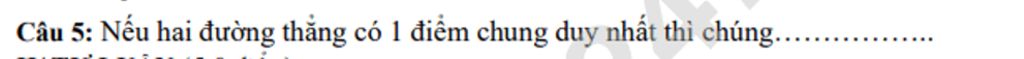 `->` Nếu hai đường thẳng có `1` điểm chung duy nhất thì chúng sẽ cắt nhau.