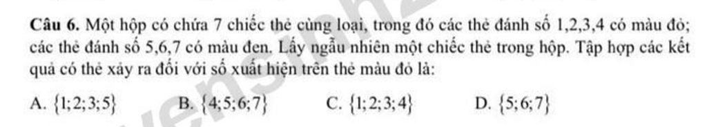 `=>` Tập hợp các kết quả có thể xảy ra đối với số xuất hiện trên thẻ màu đỏ là: