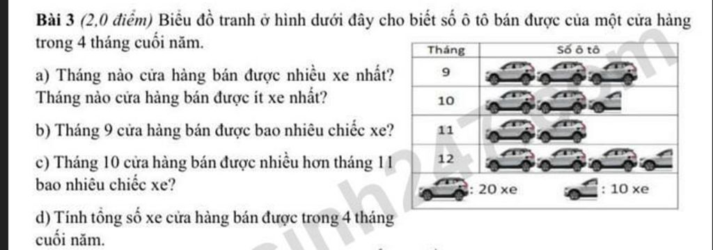 `d)` Tổng số xe cửa hàng bán được trong `4` tháng cuối năm là: