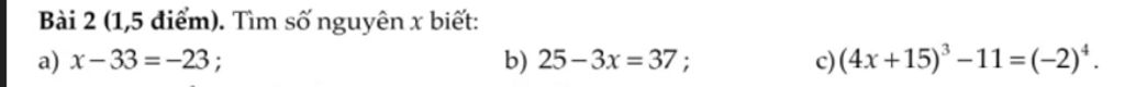 `c) (4x+15)^3 -11=(-2)^4`