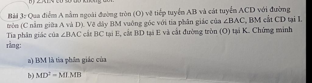 tròn (C nằm giữa A và D). Vẽ dây BM vuông góc với tia phân giác của ZBAC, BM cắt CD tại I.