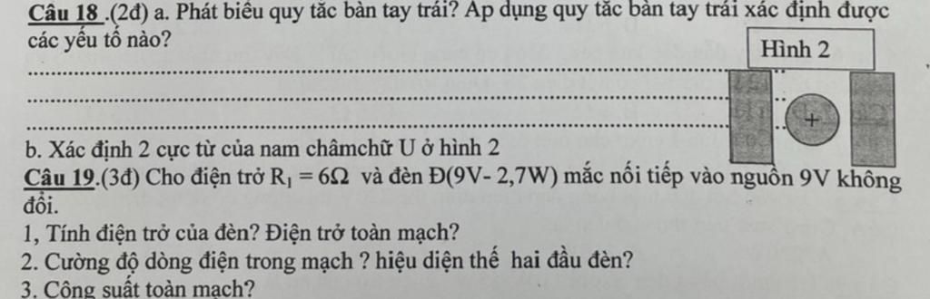 Câu 18 .(2đ) a. Phát biểu quy tắc bàn tay trái? Áp dụng quy tắc bàn tay trái xác định được