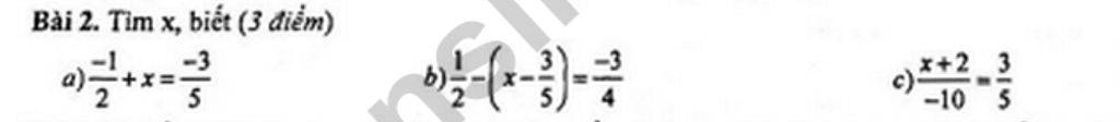 `a)` `(-1)/2 + x= (-3)/5`