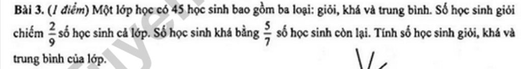 Đáp số : Giỏi : `10` học sinh ; Khá : `25` học sinh ; Trung bình : `10` học sinh .