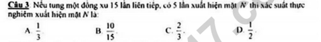 `->` Xác suất thực nghiệm xuất hiện mặt N là `5/15 = 1/3`