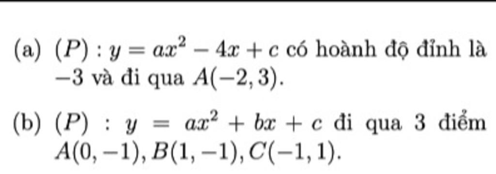 Vậy a = 1 ; b = -1; c = -1 -> (P): y = $x^{2}$ - x - 1