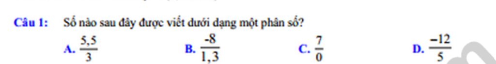 Phân số có dạng `a/b` (`a;b in ZZ;b ne0)`
