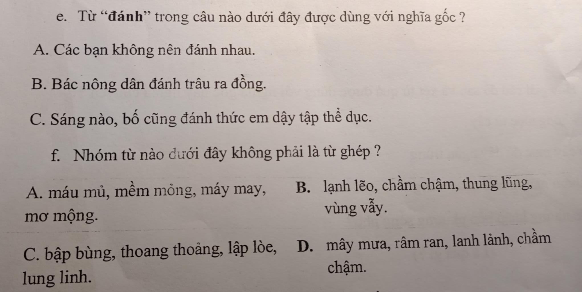 `f)` C. Bập bùng, thoang thoảng, lập loè, lung linh