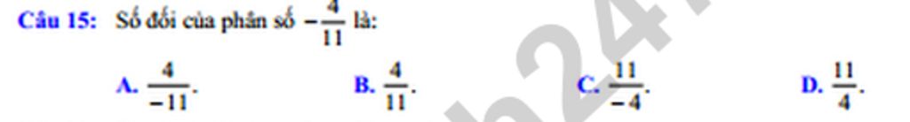 Số đối của `-4/11` là `- (-4/11) =4/11` vì