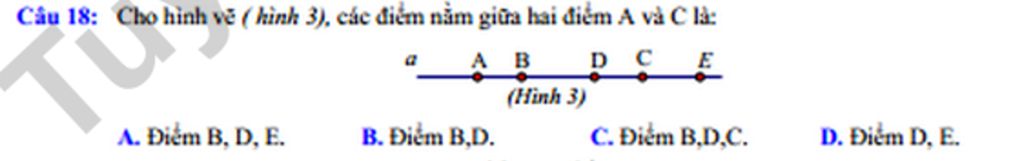 `@` Từ hình vẽ ta thấy `:` Có `2` điểm nằm giữa `A` và `C` là điểm `B` và điểm `D`