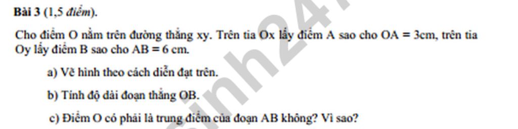 c) Ta có: `O` nằm giữa hai điểm `A` và` B ` (`1`)