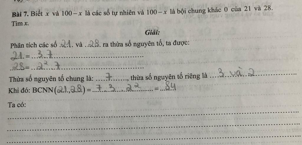 Khi đó : BCNN(21,28)= 2² x 3 x 7 = 84