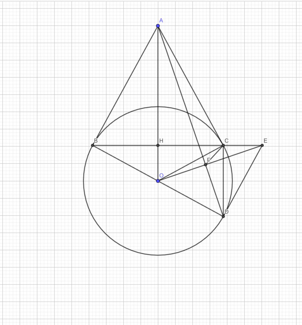 a.Vì $AB, AC$ là tiếp tuyến của $(O)\to \widehat{ABO}=\widehat{ACO}=90^o, AO\perp BC=H$ là trung điểm $BC$