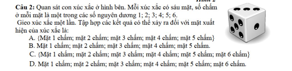 Tập hợp các kết quả có thể xảy ra đối với mặt xuất hiện của xúc xắc là: