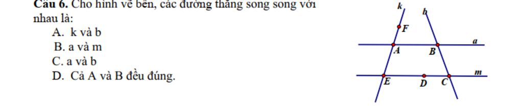 `A:` Theo mắt thường nhận thấy `k;b`không song song với nhau