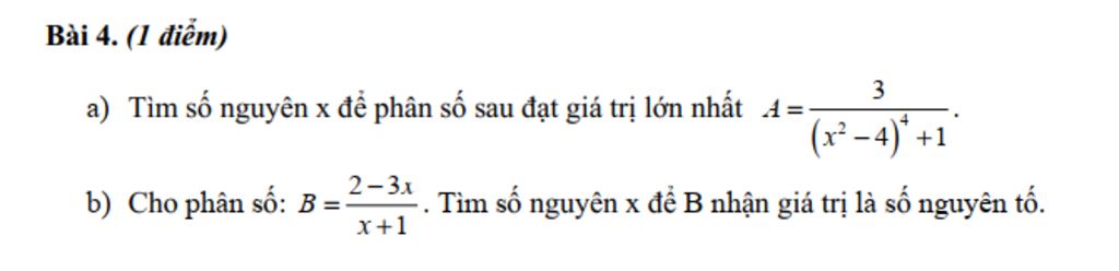 Để `A` có giá trị lớn nhất thì `(x^2 - 4)^4 + 1 = 1`