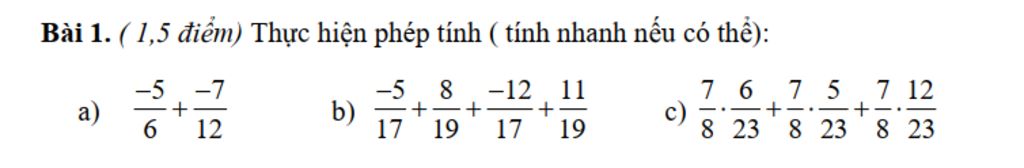 `a)(-5)/6+(-7)/12`