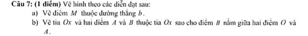 Câu 7: (1 điểm) Vẽ hình theo các diễn đạt sau: