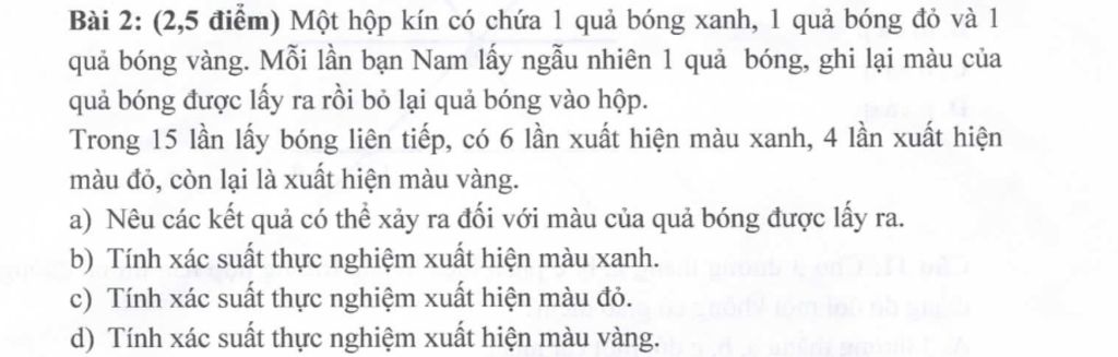 Các kết quả có thể xảy ra là: bóng xanh,bóng đỏ,bóng vàng