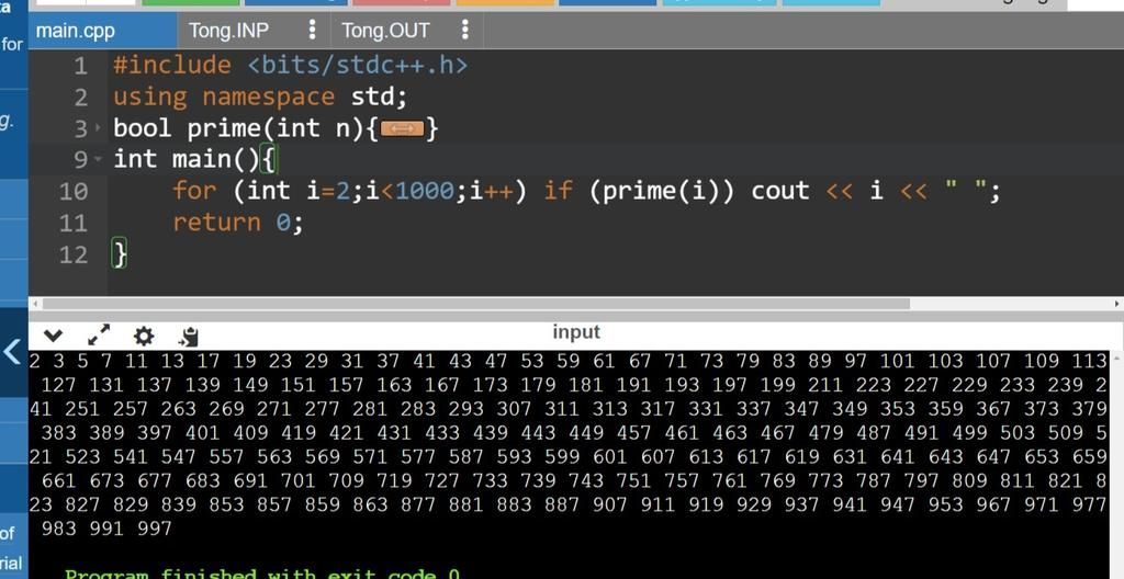 for (int i=2;i<1000;i++) if (prime(i)) cout << i << " ";